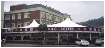 精選優質進口大品牌膜結構原材料,具有拉力強度高,承載力大,使用壽命 長,每平方承載力可以達300-500kg,數人站立同一位置都不會有任何變形, 經由專家測算,可抗風12級以上,抗震7級以上。了解詳細>>
